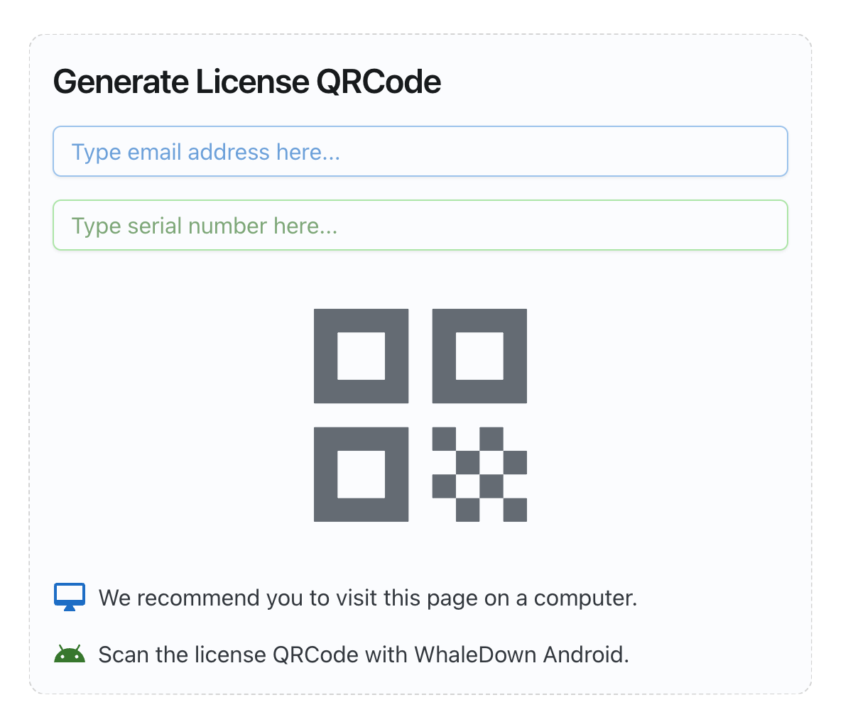 WhaleDown for Android uses the same license as the desktop version. One license can be used on up to